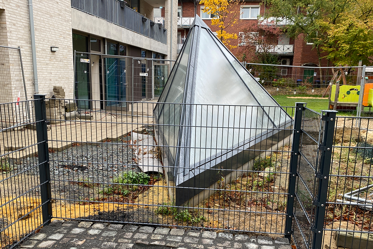 Als Nachtquartier während der Herbergssuche wäre „Keller Pins“ im Augenblick mehr als ungünstig: So manch ein Passant bedauert es, dass an manchen Tagen eine Dunstglocke massiv die geneigten Scheibenflächen des Tetraeders beschlägt. Die Ursache: Da der Kellerabstieg noch immer nicht fachgerecht abgedeckt ist, konnte bislang noch nicht die richtige Durchlüftung bzw. Austrocknung des historischen Untergeschosses vorangetrieben werden. „Aber im Januar kann es losgehen“, berichtet Verwaltungsreferent Christoph Fehmer, „vorher ist eine Realisierung der Abdeckung schwierig“. Nach wie vor macht der Fachkräftemangel im Handwerk eine zügige Umsetzung des Projektes unmöglich. „Wenn aber die Austrocknung des archäologischen Fundes Gestalt annimmt“, ergänzt Pfarrer Markus Trautmann, „können weitere Maßnahmen wie die Restaurierung des historischen Mauerwerks oder die Installierung eines Lichtlaufbandes konzipiert werden“.