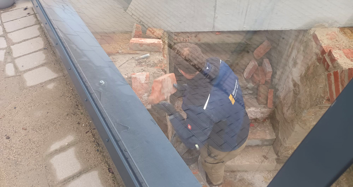 In der Woche nach dem 2. Advent ist der Restaurator Robert Wennemer aus Münster wieder in Dülmen aktiv: Er führt die Reste vom historischen Kellergewölbe des Hauses Pins so weit fort, dass man die frühere Bogenführung der Gewölbemauerung nachvollziehen kann. Hierzu wurden selbstverständlich historische Ziegel im sogenannten „Klosterformat“ verwendet.