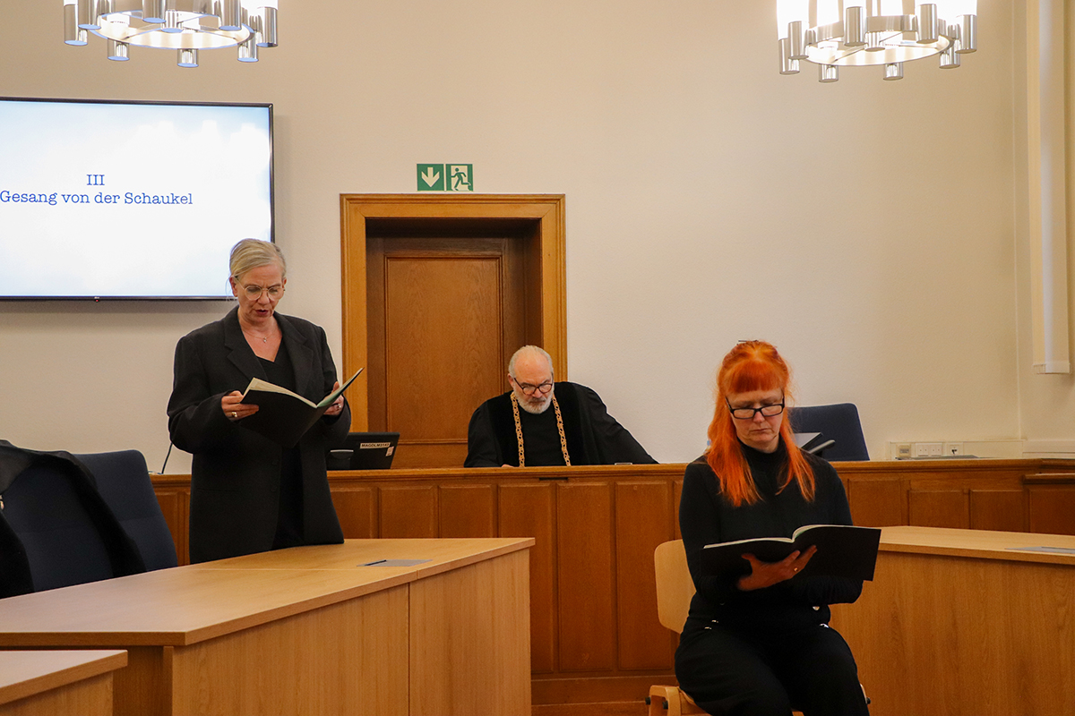 Totenstille herrschte im Amtsgericht, als hier in dieser gut gewählten Kulisse, das Stadtensemble aus Münster die szenische Lesung "Die Ermittlung" anlässlich des Holocaust-Gedenktages aufführte.